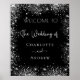 A black background, decorated with faux silver glitter sparkles. With the text: Welcome to The Wedding of. Personalize and add your names.
