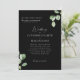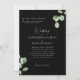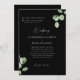 Black and white eucalyptus wedding invitation. Black background. Both Sets of Parents Listed.