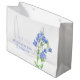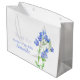 Show your appreciation to your mother or other wedding attendants with this thank you wedding favour blue flower gift bag. Perfect to fill with a large special gift to show your appreciation. A pretty botanical watercolor art Veronica speedwell wildflower gift bag in white, blue and green. Matches a range of other wedding products in the blue speedwell veronica art range. Customize / personalize these gift favour bags with your attendants title, name and a personal message or thanks. Currently reads Thank you Mother of the bride Amanda. Uniquely designed by Sarah Trett.