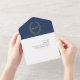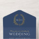 Wedding blue white gold oval leaves monogram all i in one invitation