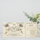 wedding invitations - boarding pass tickets with vintage beach, yacht, palm trees composition and beautiful typographic design. I suggest the "Linen" or "Felt" paper for this design.