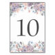 Beautiful watercolor floral table number signs with boho wildflower bouquets in shades of violet, lilac, purple, peach, blush, dusty blue and greens with an editable charcoal grey table number text. Printed on both sides for two-sided viewing. CHANGES: The charcoal grey text colour or font style can be changed by clicking CUSTOMIZE FURTHER in the PERSONALIZE section. Contact the designer via Zazzle Chat or makeitaboutyoustore@gmail.com if you'd like this design modified, on another product or would like coordinating items.