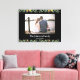 Custom photo and text stretched canvas print featuring a place for your family photo and a line of text underneath. Shown with a wedding photo and a wedding date. Lined with a garland of daisies and greenery. Personalize with your information. A great gift for your wedding or wedding anniversary.