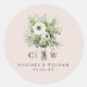 White floral wedding bouquet with monogram initials, names and date. Change the background colour to match wedding colour.
