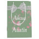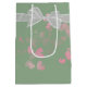 Wedding Bow On Sage Green With Hearts Medium Gift Bag