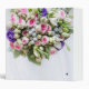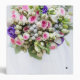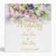 Wedding invitation - bride with colourful wedding bouquet of roses.