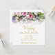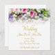Wedding invitation - bride with colourful wedding bouquet of roses.
