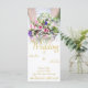 Wedding invitation - bride with colourful wedding bouquet of roses.