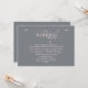 A beautiful invitation that's perfect for a "REHEARSAL DINNER or a "BEFORE and POST" WEDDING BRUNCH! The steel background features elegant swirls and roses in a very soft-rose colour. (FP)<br/><br/>The card is easy to customize with your wording, font, font colour and choice of six paper types.<br/><br/>Not exactly what you're looking for? All our products can be custom designed to meet your needs at no extra charge.<br/><br/>Simply contact us at askcottonlamb@gmail.com<br/><br/>Coordinating products available: Just ask us!
