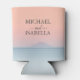 Wedding by the sea under peachy sky sunset can cooler
