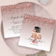 This elegant bakery business card features an illustration of an ornate rose gold and dark chocolate wedding cake on a rose gold ombre background, with a top border of rose gold dripping faux glitter. Customize it with your business name in black handwriting script with swashes at the beginning and end, and your contact information in black sans serif font. (To keep the swashes, replace only the letters in those text fields, leaving the symbols in place.)