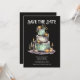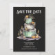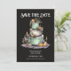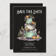 Introducing our wedding cake Save the Date invitation - perfect for a Halloween wedding! This watercolor design features a beautiful wedding cake decorated with pumpkins and black roses, set against a dark chocolate background.