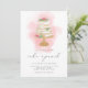 A beautiful wedding cake and punch/cake cutting reception, perfect for low key celebrations. This design features a stunning 2 tier watercolor cake adorned with pink flowers, on a faux gold cake stand, on a pink watercolor wash background. "cake + punch" is in dark grey modern calligraphic style font. Personalize with your details in dark grey serif font. The reverse features a pink watercolor wash.