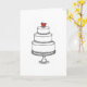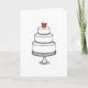 Cute, simple black and white pen-and-ink drawing of a wedding cake topped with a red heart