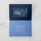 This wedding greeting card features an old Irish wedding blessing given as a custom for the happy future of the bride and groom. Front of card is of deep and mid-tone blue colorings with gold-ish and tan colorings of roses [ no actual gold or gold foil ink ]. Inside has a framed sampled version of the front of card on upper flap in deep blue color. Lower flap of card is of a mid-tone blue-ash color with white text. Text on front reads: " A Wedding Blessing For Your Special Day". Inside a warm and lovely blessing. Light enough blue color for you to take a pen to sign your name.