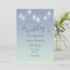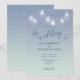 Wedding Casual Theme Soft Blue and White Invitation designed with white mason-jar lights, on a soft blue background. The text includes: The Bride and Groom's Names, Wedding Date, Time, Location and Reception Details. To personalize, simply insert your details into our easy template, replacing the sample text. Be sure to view the complete Wedding Casual Theme Soft Blue and White Collection for matching cards and accessories.