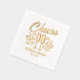 These beautiful real-foil wedding napkins include a champagne-glass theme, with two glasses surrounded by flower and leaf motifs. The elegant cursive text says "Cheers" and the design includes room for the bride and groom names and wedding date. Catch the eye of your guests with these simply stunning, personalized foil napkins.