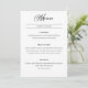 These elegant, black and white wedding menu cards feature modern swirly calligraphy script for an updated classic look.