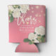 Wedding Cheers to Love Wedding Shower Can Cooler / koozies Templates - Elegant White lovely Watercolor Hydrangea Flowers and String Lights on Pink Gradient Background.