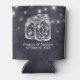 Wedding Cheers to Love Can Cooler / koozies Templates - Elegant Mason Jars and String Lights on Blue Floral Damask Background.