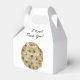 Send your wedding guests home with delicious chocolate chip cookies or dough treats packaged in these sweet favour boxes. These cute, personalized boxes show an original drawing of a chocolate chip cookie on both sides, with the phrase, "Dreams really dough come true." Below that, use the templates to add the bride and groom names and wedding date. The cursive text at the top says, "A Sweet Thank You!" and can also be changed if you like. This unique design also works for treats at bridal showers. Make your special day extra-sweet with these custom favour boxes!