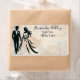 Help family and friends remember or learn names of other wedding guests with a custom label name tag featuring bride and broom art and a subtle abstract background. Personalize the text fields, remove any text or edit using the Edit Design tool to select a font colour, size, and style your prefer. The shipping label size and design allows room for the attendee's name to be added at the reception, bridal party dinner or other wedding event.
