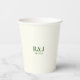 Create wedding paper cups featuring your monograms! Green with a very light shade of yellow. Simple and modern appeal. Customize the front and back with your desired couple monogram and wedding date. Part of the Romantic Tree Design collection. Use the template to create your own wedding monogram paper cups.