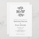 Simple wedding couple monogram initials with botanical line art leaf details for a beautiful and unique modern minimalist black and white wedding invitation. Change any of the text to personalize.