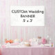 Wedding Custom Banner 5' x 3', edge-to-edge vibrant full colour print, edges are hemmed then thermal welded for a clean and neat finish. Available in indoor, outdoor, and outdoor with metal grommets. 4 size options.