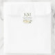Wedding Custom Name Monogram White Cream Green Classic Round Sticker
