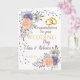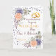An elegant Wedding day congratulations card comprising of a pretty floral watercolor peony roses in pale pink and purple, green foliage and string lights and gold wedding rings. This elegant card is the perfect way to say congrats to the happy couple on their wedding day. Personalize with the names, date and inside message. Gender neutral design.