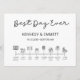 Your guests will love reading all the details of your wedding on these lovely Wedding Timeline Programs!  It features "Best Day Ever" top and centre in a beautiful handwritten font and you can easily edit the icon timeline to accommodate your wedding day schedule.  This 5.5 x 7.5 program is perfect if your wedding is at a country club, resort or even the courthouse.   It's simple, trendy and minimalist and the fonts are modern and easy to read.  Make it as unique as you!