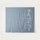 Elegant dusty blue wedding photo backdrop tapestry with "Best Day Ever" in a stylish modern white script, your first names and the date.