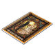 A simple wedding design but steeped with formality and tradition. The stained glass design highlights the sacredness of the occasion while the traditional clothes of the bride and groom highlight traditional cultural norms and formality. Customizable words such as names and slogans. Marked as “generativecontent”.