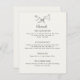Charcoal and linen wedding details card with vintage inspired typography and a hand drawn illustration of birds with a bow.
