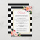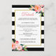 Wedding Details Modern Floral Black White Stripes Enclosure Card