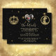 Romantic and unique black and gold celestial details card featuring your personal Zodiac Signs. Gold lettering to set it off and a photo in a heart on the back for the special couple. For any design questions or additional customization and / or matching items, just send a chat or an email to charmdesignstudio@rcn.com and we'll be delighted to assist. *NOTE: you may easily add your own Zodiac signs or ask our studio and we will create a personalized invitation with your specific signs in the same design pattern set as the ones included here.