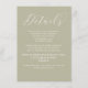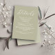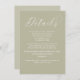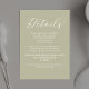 This design features a details invitation enclosure card, with an elegant sage green style, with a scannable QR code, and RSVP online option, a minimal, minimalist, simple, calligraphy script, Share your wedding website in style.