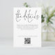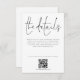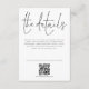 Wedding Details QR Code Script Enclosure. Let your guests know details such as directions and accommodation information for your wedding when you send their invitations. This elegant design has set stylish large typography for the heading The Details and the rest of the text can be easily personalised to your words along with your website QR code. You can choose any colours of your choice for the text and background colours on both sides via the customise further option. Your QR code will be automatically generated to update the sample code in the design, when you simply change the sample URL in the template with your own wedding website URL.