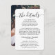 Share one of your engagement or wedding photos as well as all of the important details with chic modern enclosure cards. Picture and all wording on this template are simple to customize. (IMAGE PLACEMENT TIP: An easy way to centre a photo exactly how you want is to crop it before uploading to the Zazzle website.) The black and white design features modern minimalist typography, handwritten script calligraphy, and 1 picture of your choice. This card makes a stylish way to include additional information with a wedding invitation suite.