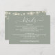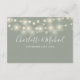 An elegant sage green wedding details information enclosure card featuring pretty string lights. Personalize with your special details set in stylish typography and your names and wedding date on the reverse. Designed by Thisisnotme©