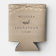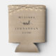 Wedding Dinner and Party, Rustic String Lights, light brown tan wood background Can Cooler