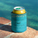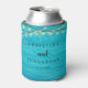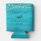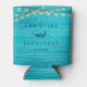 Wedding Dinner and Party, Rustic String Lights, light teal blue green wood background Can Cooler