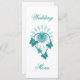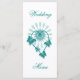 Wedding dinner menu teal coloured butterflies heart design. Customise this teal coloured wedding menu with your wedding details. Should you require any help with customising then contact us through the link on this page. Teal coloured heart and butterflies design personalised wedding menu