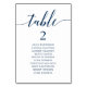 Wedding Dinner Guest Seating Table Chart Card, Modern Classy romantic, navy blue themed