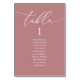 Wedding Dinner Guest Seating Table Chart Card, Modern Classy romantic calligraphy in dusty rose themed.