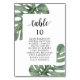 Wedding Dinner Guest Seating Table Chart Card, Modern Greenery Monstera themes.