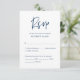 This is the beautiful Modern Elegant calligraphy, RSVP (Respond) Enclosure Card, in Navy Blue font, where you can edit, change colour and format it as per your design requirement, with meal options, reserved seats, number attending and song request option.