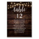Wedding Dinner Guest Seating Table Chart Card, Modern Rustic Script, String lights, Dark Wood background