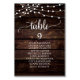 Wedding Dinner Guest Seating Table Chart Card, Modern Rustic Script, String lights, Dark Wood background